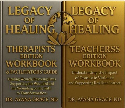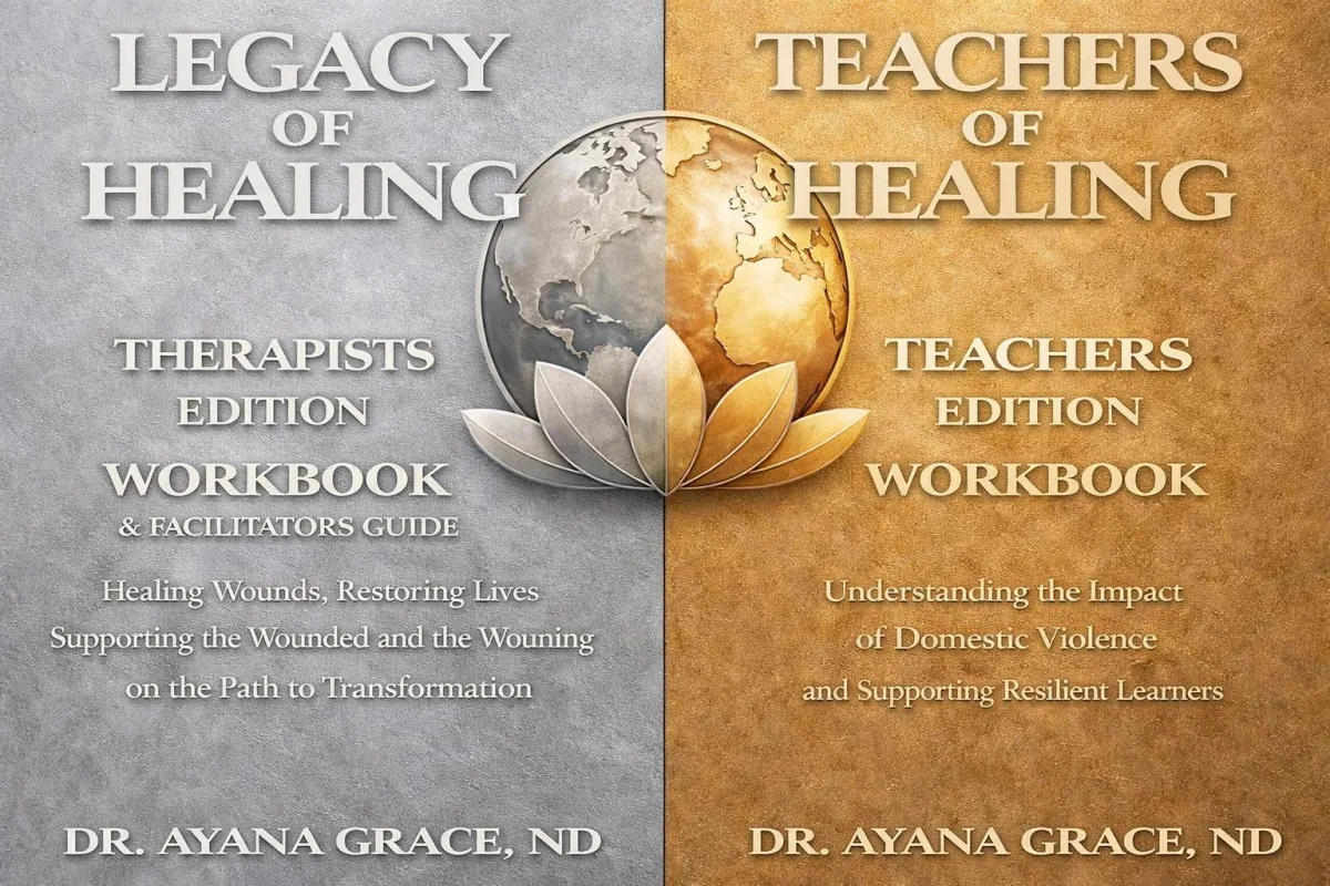 Side-by-side, their covers form the complete Legacy of Healing emblem — illustrating that meaningful restoration requires more than one perspective. It grows through the collaboration of those entrusted with teaching, care, protection, and emotional support.