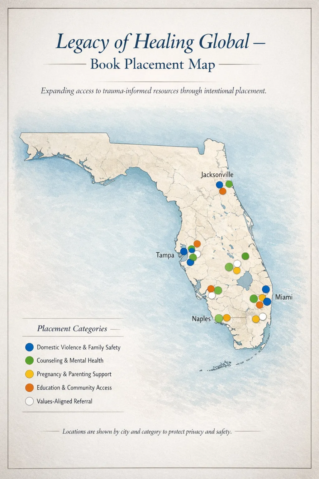 Legacy of Healing Global is committed to responsible stewardship of sponsorship support. Educational resource placements are coordinated intentionally with vetted organizations and professionals to ensure materials reach individuals and families who can benefit from them most.